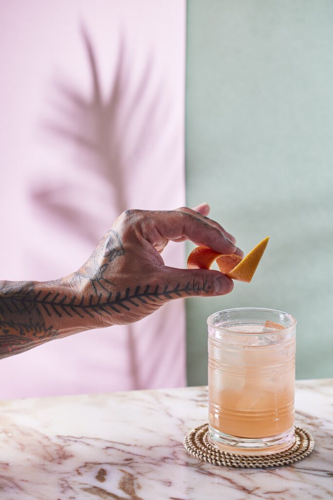 Stir gently and garnish with a twist of grapefruit zest for aroma