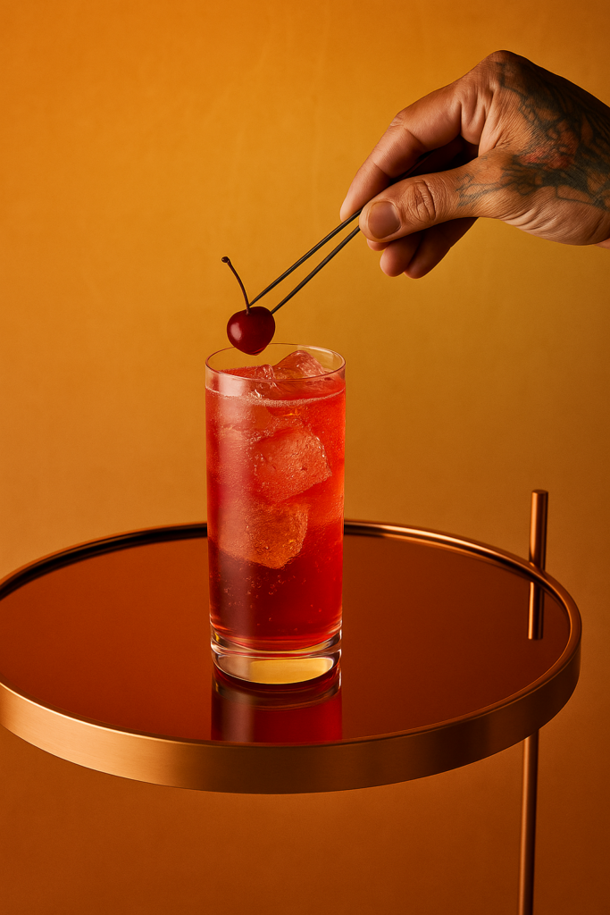 4. Garnish with a maraschino cherry.